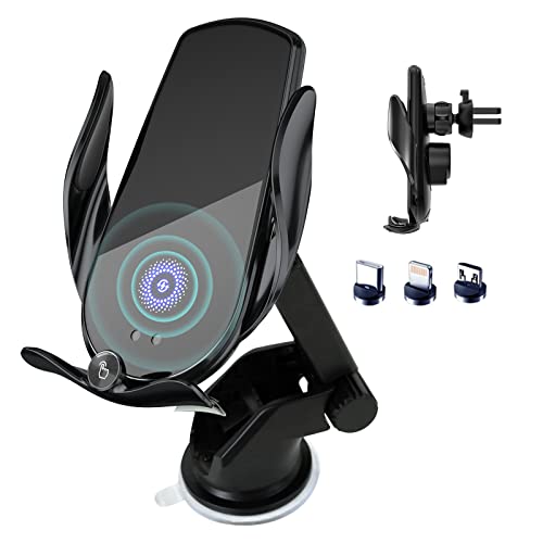 The MOKPR Wireless Car Charger is a versatile car mount that combines wireless charging capabilities with a secure phone holder. With its auto-precise alignment charging feature, the charger can intelligently identify your device and adjust it to the best charging position, ensuring fast and efficient charging. The auto-clamping arms and foot make it easy to secure your phone in place without the need for manual adjustments. The charger also features a 360° rotating sphere, allowing for comfortable and safe GPS navigation while charging. It has a strong vent clip and innovative silicone rubber to hold your phone securely, even on bumpy roads. The charger is compatible with a wide range of devices and supports charging through phone cases up to 4mm thick. It requires a QC 3.0 car charger for fast charging. Overall, the MOKPR Wireless Car Charger is a convenient and reliable solution for charging your phone while driving.