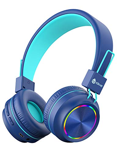 The iClever Kids Bluetooth Headphones are designed with kids in mind, offering a safe and fun listening experience. The headphones feature a cool LED light design and deliver immersive stereo sound. With a 25-hour playtime and foldable design, they are perfect for long trips and travel. The Bluetooth 5.0 technology ensures a wireless and hassle-free listening experience, while the built-in microphone allows for hands-free calls. The headphones are also comfortable to wear, thanks to the memory foam ear cushions and adjustable headband. Available in blue, these headphones are a great choice for kids of all ages.