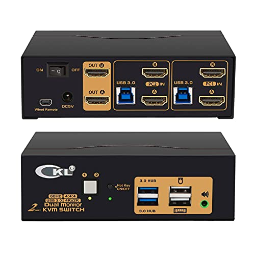 The CKL 2 Port USB 3.0 KVM Switch Dual Monitor HDMI 4K 60Hz allows you to control 2 computers or laptops with one set of keyboard, mouse, and 2 extended or mirrored monitors simultaneously. It has USB 3.0 ports for sharing peripherals and supports a maximum resolution of 4K@60Hz. This KVM switch is compatible with major operating systems and offers easy swapping between devices. However, adapters may be needed for non-HDMI outputs. Customers have praised its performance and affordable price but have experienced some issues with connectivity and audio. Overall, the CKL 2 Port USB 3.0 KVM Switch Dual Monitor HDMI 4K 60Hz is a reliable and convenient solution for managing multiple devices and monitors.