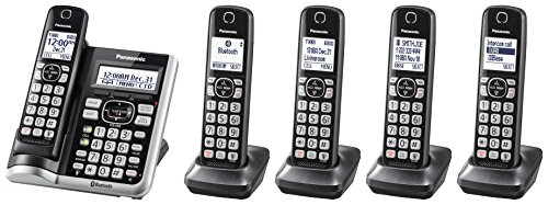 Stay connected with the Panasonic Link2Cell Bluetooth Cordless Phone System. This 5-handset home phone system is packed with features to keep you connected, including a digital answering machine, interference-free phone signal, and the ability to connect to your cell phone and voice assistants. The talking caller ID announces caller information in English or Spanish, and the smart call blocker allows you to easily block unwanted calls. Additional features include handset to handset intercom, baby monitor function, and a 3000-entry phone book. With its sleek black design with silver trim, this Panasonic cordless phone system is both stylish and practical. Stay connected and enjoy clear, convenient communication with the Panasonic Link2Cell Bluetooth Cordless Phone System.