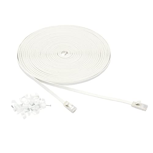 - -Flat Design & 20 Free Clips: Cat6 50 feet internet wire with Ultra-thin technology avoids tangled cords and saves space. With 20 FREE cable clips, you can easily and seamlessly make the cable run along walls, follow edges or corners. Super flexible when run under the carpet or bent in the plane of its thin cross-section such as doors, drawers, rotating arms etc, cleaner and safer.