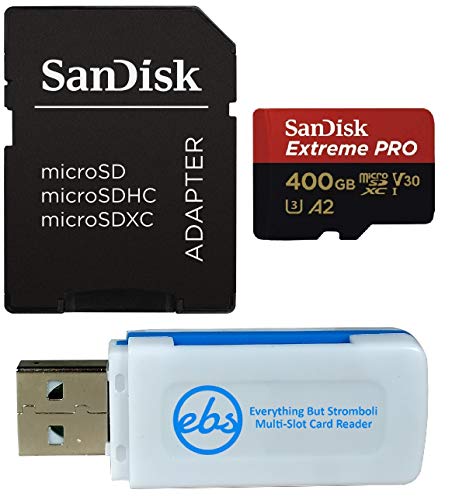- Bundle includes (1) 400GB Micro SD Extreme Pro San Disk Memory Card with Adapter and (1) Everything But Stromboli (TM) Micro SD Card Reader