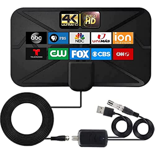 The Amplified HDTV Indoor Antenna is a powerful TV antenna that allows you to receive FULL HD Channels like ABC, CBS, NBC, PBC, Fox, and more. With its upgraded amplifier signal booster and smart IC chip technology, it provides crystal clear TV HD sound quality and picks up signals within a 200-mile range. This antenna can be placed anywhere in your home and constantly scans for new channels. It also comes with a long coaxial cable and USB power adapter for easy placement and installation. The black color adds a sleek touch to any room. With excellent customer service, this indoor antenna is a reliable and convenient choice for enjoying local channels and more.