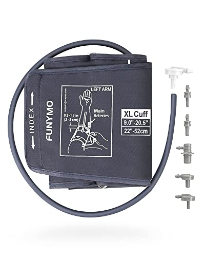 The Extra Large Cuff is a compatible replacement cuff for blood pressure monitors, designed to fit adult arms measuring 9-21 inches in circumference. It features a compatibility design that suits most brands of blood pressure monitors, with easy installation and adjustability. The cuff is made of nylon fabric and TPU airbag material, ensuring comfort and non-toxicity. The package includes the XL replacement cuff along with various connectors and a user guide. Please note that this product does not include a blood pressure monitor. Customers have rated it at 4.3/5 and have praised its comfort and accuracy. However, some users found it to be bulky, while others reported higher readings compared to the stock cuff. Overall, the Extra Large Cuff is a reliable option for those with larger arms.
