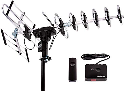 Experience crystal clear HDTV reception with the Five Star Outdoor Digital Amplified HDTV Antenna. This antenna boasts a long range of up to 200 miles and features a 360-degree rotation capability by remote control. With advanced VHF UHF reception and a built-in Auto Gain Control Chip, the antenna offers enhanced image resolution and improved signal stability. The antenna's reflector elements prevent wind obstruction, while the LTE filter ensures interference-free DTV/VHF/UHF image. Installation is a breeze, and you can enjoy local free HDTV channels without any contracts or monthly bills. Overall, the Five Star Outdoor Digital Amplified HDTV Antenna provides a high-quality, efficient and affordable solution for your TV viewing needs.